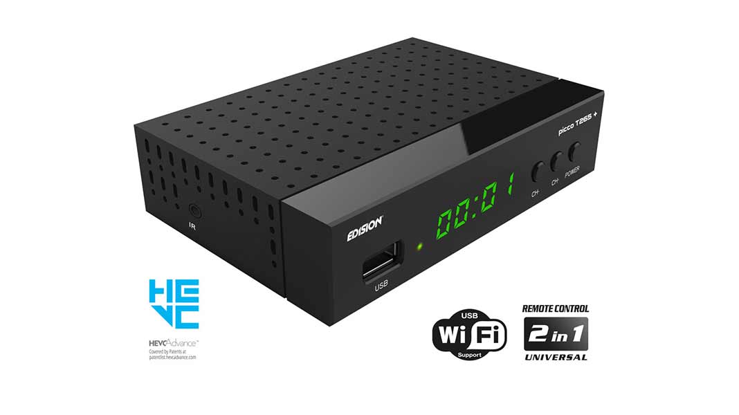 Ο Επίγειος Ψηφιακός Αποκωδικοποιητής PICCO T265+, προσφέρει επιπλέον υποστήριξη USB WiFi για πρόσβαση στις εφαρμογές YouTube, Καιρός, αλλά και Online αναβάθμιση λογισμικού με προαιρετική χρήση της κεραίας WiFi EDI-Mega, ενώ σαφώς διαθέτει λειτουργίες Media Player και δυνατότητα εγγραφής PVR.