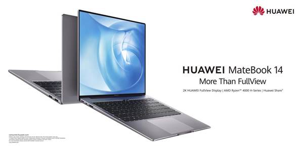 Στην virtual παρουσίασή της, η Huawei αποκάλυψε επίσης το HUAWEI MateBook 14. Κομψό και ισχυρό, το HUAWEI MateBook 14 διαθέτει επεξεργαστή της AMD Ryzen 4000 H Series και ανεμιστήρες HUAWEI Shark Fin Fans, για καλύτερη απόδοση και μέγιστη ανθεκτικότητα, ακόμα και σε συνθήκες υπερφόρτωσης. Πέραν της εξαιρετικής απόδοσής του, το HUAWEI MateBook 14 έχει οθόνη 2K HUAWEI FullView Display και υποστηρίζει «έξυπνες» λειτουργίες όπως το Multi-screen Collaboration για τους χρήστες που βρίσκονται συνεχώς εν κινήσει.