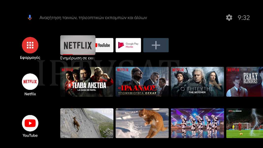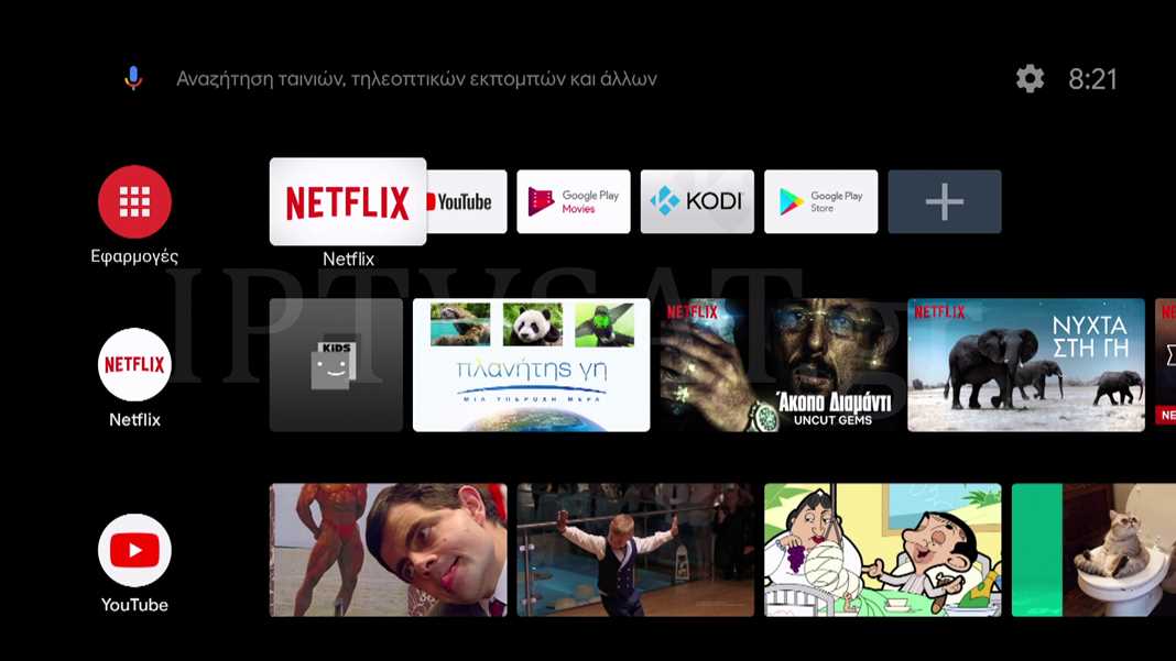 Η πρώτη σειρά των βασικών εφαρμογών, περιλαμβάνει τα Netflix, YouTube, Google Play Movies και Google Play Store, ενώ εμείς προσθέσαμε και το KODI, όπως φαίνεται και στην αντίστοιχη φωτογραφία.