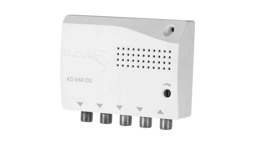 Το μοντέλο AD 640 D2 με 4 εξόδους, παρέχει Gain 18 dB (VHF/UHF), ρύθμιση κέρδους 16 dB και μέγιστη στάθμη εξόδου 100 dBμV (DIN 45004B), ενώ ο βαθμός θορύβου είναι 4 dB (VHF/UHF).