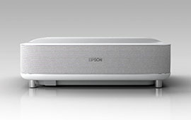Ο EH-LS300 είναι ένας οικιακός βιντεοπροβολέας εξοπλισμένος με φακό εξαιρετικά κοντινής προβολής. Με μέγεθος προβολής έως 120 ίντσες, σύστημα ηχείων 2.1 καναλιών της Yamaha που παρέχει εξαιρετική ποιότητα ήχου και ενσωματωμένες λειτουργίες για προβολή περιεχομένου βίντεο, μπορείτε εύκολα να απολαύσετε μια καθηλωτική εμπειρία θέασης απλά τοποθετώντας τον προβολέα δίπλα σε έναν τοίχο. Η Epson σχεδίασε αυτόν τον βιντεοπροβολέα για χρήση σε σαλόνι. Η χρήση υφάσματος για να ταιριάζει στην υφή ενός εσωτερικού χώρου υποδηλώνει το επίπεδο λεπτομέρειας που πληροί το σχέδιο.