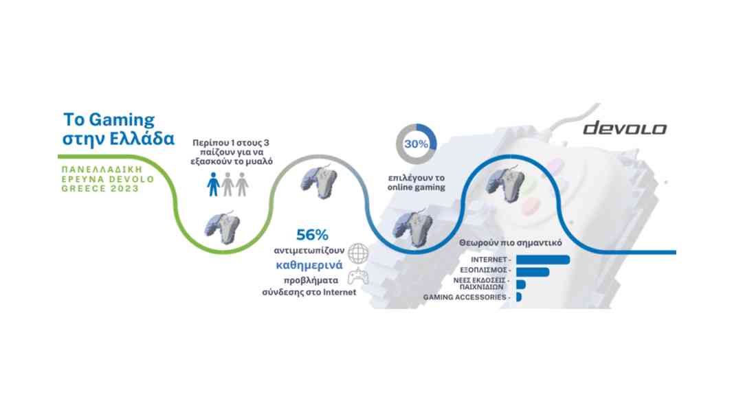 Η devolo Greece διεξήγαγε πανελλαδική έρευνα σχετική με το gaming στην Ελλάδα. Πόσες ώρες ασχολούνται οι Έλληνες καθημερινά με το gaming; Τι είδους παιχνίδια προτιμούν; Αλλά και πως τους έχει επηρεάσει η ενεργειακή κρίση; Μέσα από την συγκεκριμένη ανώνυμη έρευνα, η devolo δίνει απαντήσεις για ένα από τα πιο δημοφιλή hobby πολλών Ελλήνων και ερευνά τα προβλήματα που μπορεί να αντιμετωπίζουν οι gamers στην καθημερινότητα του εικονικού τους κόσμου. Η έρευνα κοινοποιήθηκε σε τεχνολογικά μέσα, τα οποία εστιάζουν θεματικά στο gaming, κατά το χρονικό διάστημα Μάιο έως Ιούλιο 2023 και στην οποία συμμετείχαν συνολικά 562 άτομα.