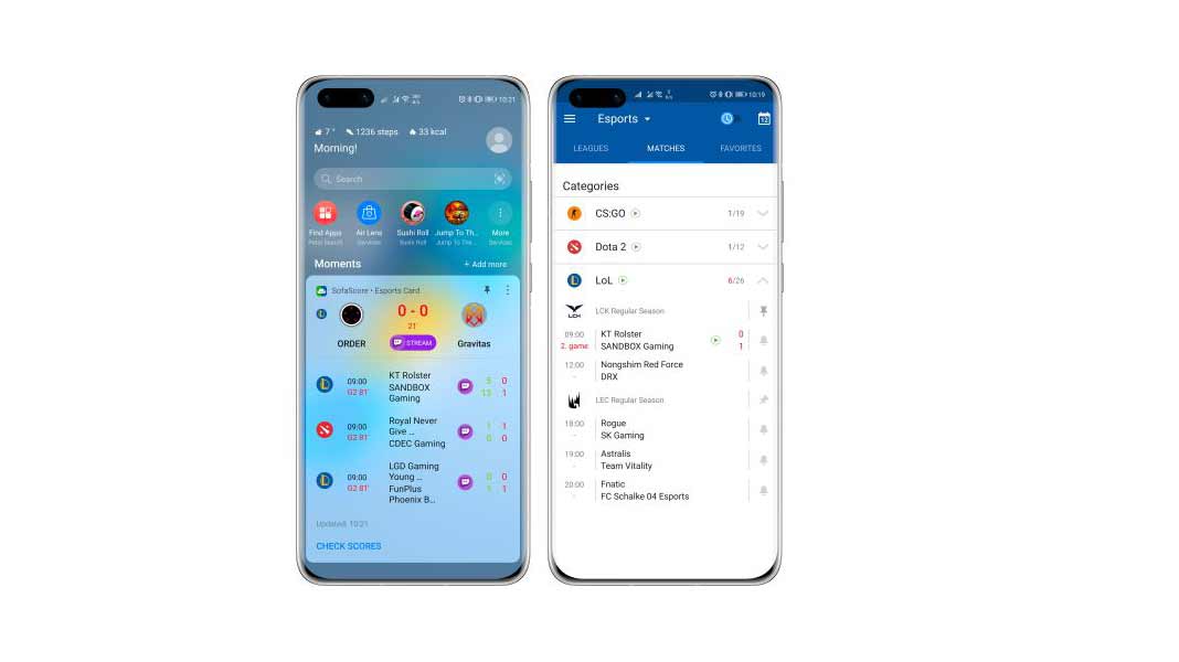 Το SofaScore, το οποίο συμπεριλαμβάνεται στο AppGallery, εξειδικεύεται στα στατιστικά αγώνων που παράγονται σε πραγματικό χρόνο κατά τη διάρκεια αθλητικών γεγονότων, αγωνισμάτων και πρωταθλημάτων σε όλο τον κόσμο. Διατίθεται σε 30 γλώσσες και καλύπτει πάνω από 20 αγωνίσματα με πάνω από 20 εκατομμύρια ενεργούς χρήστες. Η νέα έκδοση του Esports μπορεί να παρέχει στους ιδιοκτήτες smartphones της Huawei πληροφορίες γύρω από όλα τα τελευταία νέα: