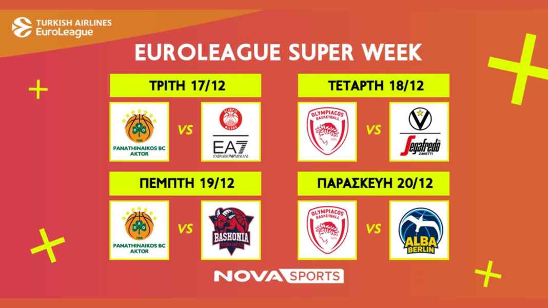 H «Διαβολοβδομάδα» Νο5 της EuroLeague, της κορυφαίας ευρωπαϊκής διασυλλογικής διοργάνωσης στο χώρο του μπάσκετ, με τις τέσσερις αναμετρήσεις των «αιωνίων» επί ελληνικού εδάφους σε ΟΑΚΑ και ΣΕΦ, έρχεται αυτή την εβδομάδα στο παρκέ του Novasports! Τα φώτα πέφτουν στις αναμετρήσεις των ελληνικών ομάδων Παναθηναϊκός AKTOR-Αρμάνι Μιλάνο (17/12, 21:15) & Ολυμπιακός-Βίρτους Μπολόνια (18/12, 21:15) για την 16η αγωνιστική και Παναθηναϊκός AKTOR-Μπασκόνια (19/12, 19:45) & Ολυμπιακός-Άλμπα Βερολίνου (20/12, 21:15) για την 17η αγωνιστική. Η απόλυτη μπασκετική εκπομπή, Playmakers θα μεταφέρει όλα όσα συμβούν και στις δύο αγωνιστικές με την πληρέστερη και αρτιότερη δημοσιογραφική κάλυψη και εκλεκτούς καλεσμένους.