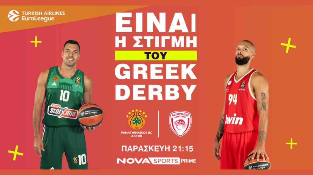Οι φίλοι του μπάσκετ την Παρασκευή 8 Νοεμβρίου (21:15) θα έχουν την ευκαιρία να απολαύσουν στο Novasports Prime το μεγάλο ντέρμπι της 8ης αγωνιστικής της EuroLeague ανάμεσα στον επτάστερο πρωταθλητή Ευρώπης, Παναθηναϊκό AKTOR και τον ενισχυμένο και φιλόδοξο Ολυμπιακό που θα διεξαχθεί στο κλειστό του ΟΑΚΑ. Από τις 19:30 οι συνδρομητές της Nova θα μπουν στο ρυθμό του αγώνα με την εκπομπή Playmakers με τον Γρηγόρη Παπαβασιλείου με όλα τα τελευταία νέα, ρεπορτάζ, δηλώσεις, καλεσμένους και αναλύσεις.