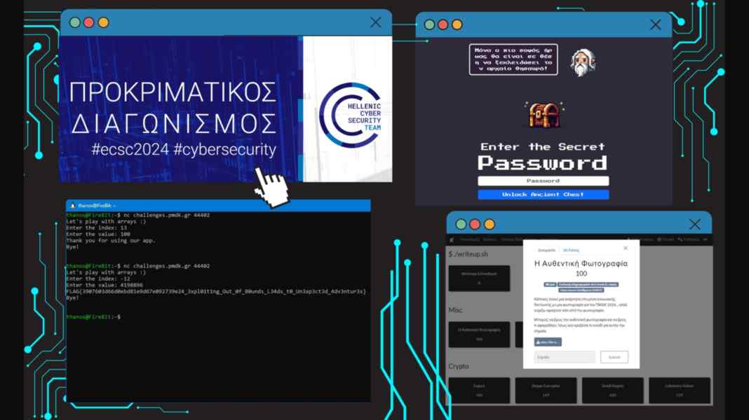 Με επιτυχία ολοκληρώθηκε ο προκριματικός διαγωνισμός για τη στελέχωση της Εθνικής Ομάδας Κυβερνοασφάλειας, που θα εκπροσωπήσει τη χώρα μας για 9η συνεχόμενη χρονιά, στο μεγάλο ευρωπαϊκό διαγωνισμό κυβερνοασφάλειας European Cyber Security Challenge 2024 (ECSC24), ο οποίος θα διεξαχθεί από τις 7 έως τις 11 Οκτωβρίου 2024, στο Τορίνο της Ιταλίας.