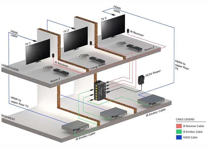 Ας υποθέσουμε ότι έχετε 3 δορυφορικούς δέκτες, ένα για κάθε δωμάτιο με TV και θέλετε να τους τοποθετήσετε σε ένα κεντρικό ντουλάπι ώστε να μην είναι ορατοί. Αν όλοι αυτοί οι δέκτες είναι της ίδιας εταιρίας, σημαίνει συνήθως ότι μπορείτε να χρησιμοποιήσετε το τηλεχειριστήριο από ένα δέκτη για να τους ελέγξετε όλους. Αυτό παρουσιάζει πρόβλημα με ένα IR Extender Kit Μονής Ζώνης, επειδή αν συνδέσετε και τους 3 δέκτες στο ίδιο IR Extender Kit το σήμα από ένα τηλεχειριστήριο θα περάσει ΚΑΙ στους 3 δέκτες. Σε αυτή την περίπτωση καταλήγετε να αλλάζετε κανάλι και στους 3 δέκτες αντί μόνο στον ένα. Για να το επιλύσετε το πρόβλημα θα πρέπει κανονικά να αγοράσετε τρία IR Extender Kit Μονής Ζώνης. Ωστόσο, χρησιμοποιώντας μόνο ένα IR Extender Kit Τριπλής Ζώνης σας επιτρέπει να τοποθετήσετε κάθε δορυφορικό δέκτη στην δική του Ζώνη, ώστε αλλάζοντας το κανάλι σε έναν δέκτη σε ένα από τα δωμάτια ΔΕΝ θα αλλάζει το κανάλι στους άλλους δέκτες! Το πρόβλημα λύθηκε!