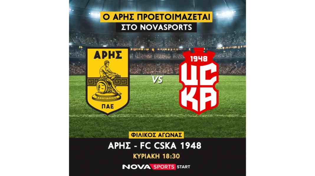 Ο Άρης παίζει μπάλα αυτή την Κυριακή στο Novasports! Οι φίλοι του ποδοσφαίρου, την Κυριακή 9 Ιουλίου στις 18:30 θα έχουν την ευκαιρία να παρακολουθήσουν σε ζωντανή και αποκλειστική μετάδοση στο Novasports Start τον φιλικό αγώνα προετοιμασίας Άρης – FC CSKA 1948. Η αναμέτρηση θα διεξαχθεί στο γήπεδο του Μακεδονικού και είναι το πρώτο φιλικό τεστ που θα δώσει η ομάδα του Απόστολου Τερζή στην Ελλάδα στο πλαίσιο της προετοιμασίας της. Στην περιγραφή του αγώνα θα είναι ο Γιάννης Πάγκος ενώ το ρεπορτάζ από τον αγωνιστικό χώρο θα μεταφέρει ο Ευγένιος Δαδαλιάρας.