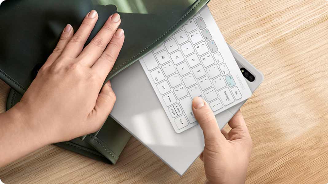 Το Samsung Smart Keyboard Trio 500 διαθέτει πλήκτρα που είναι όμοια σε μέγεθος με αυτά ενός κανονικού πληκτρολογίου. Κυκλοφορεί σε λευκό και μαύρο χρώμα, προσφέροντας ενισχυμένη αποδοτικότητα και ευκολία, ακόμα και εν κινήσει.
