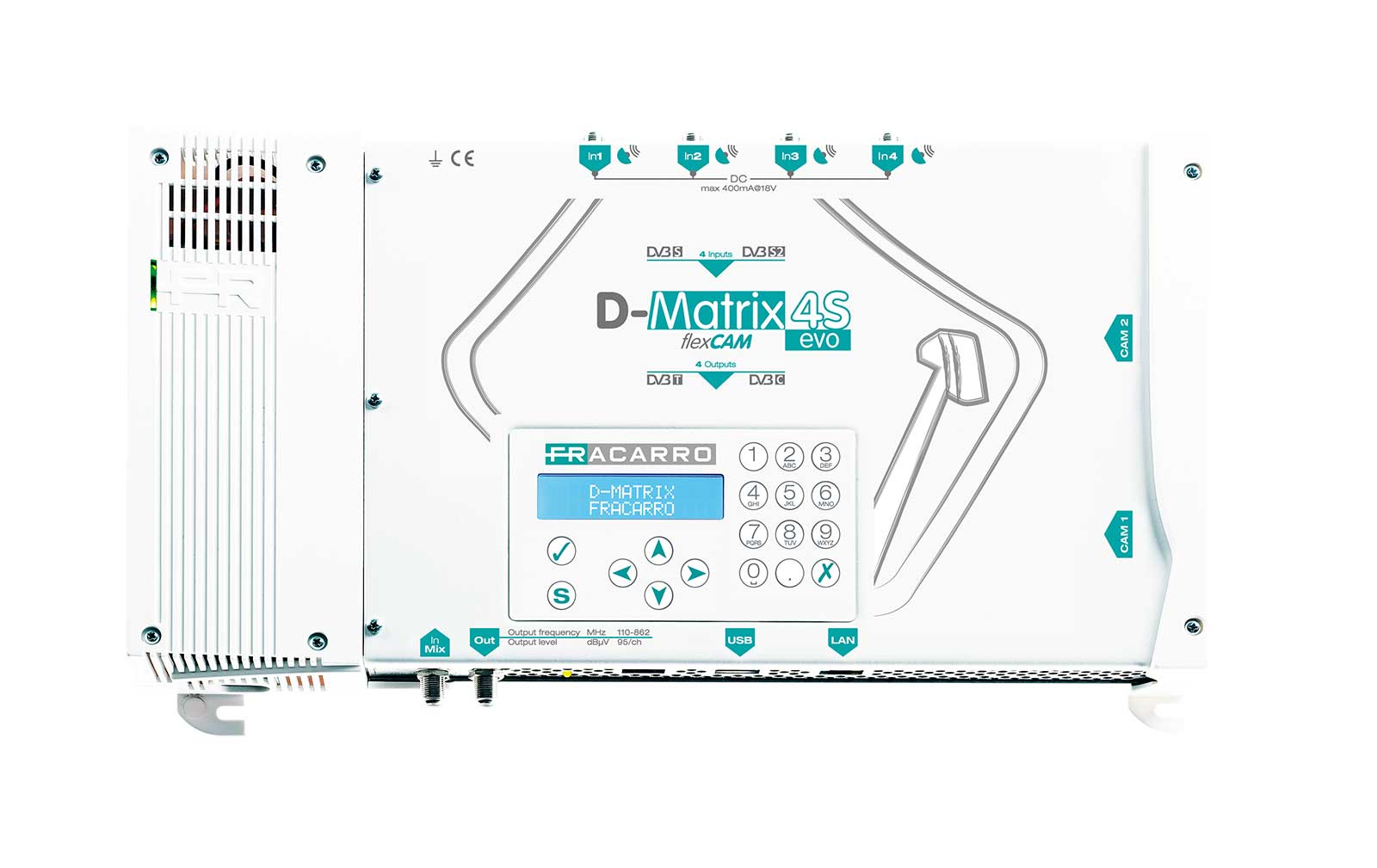 Το headend D-Matrix 4S EVO της Fracarro, παρέχει μία ποιοτική, οικονομική και «συμπαγή» λύση για τη διανομή καναλιών από 4 δορυφόρους κι ένα video playback από USB stick σε 4 DVB-T multiplex με δυνατότητα χρήσης 2 CI , κορυφαία ευκολία και εκτεταμένη παραμετροποίηση !