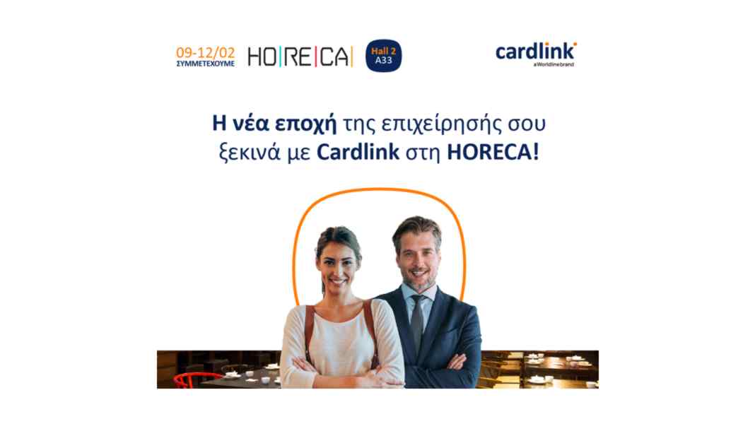 Η Cardlink, μέλος της Worldline (Euronext:WLN), του ευρωπαϊκού ηγέτη στις υπηρεσίες πληρωμών, με μεγάλη χαρά θα δώσει και φέτος δυναμικό παρόν στην Έκθεση HORECA, την κορυφαία εμπορική έκθεση για τους κλάδους της φιλοξενίας και της μαζικής εστίασης που θα διεξαχθεί μεταξύ 09- 12 Φεβρουαρίου 2024 στο Athens Metropolitan Expo.