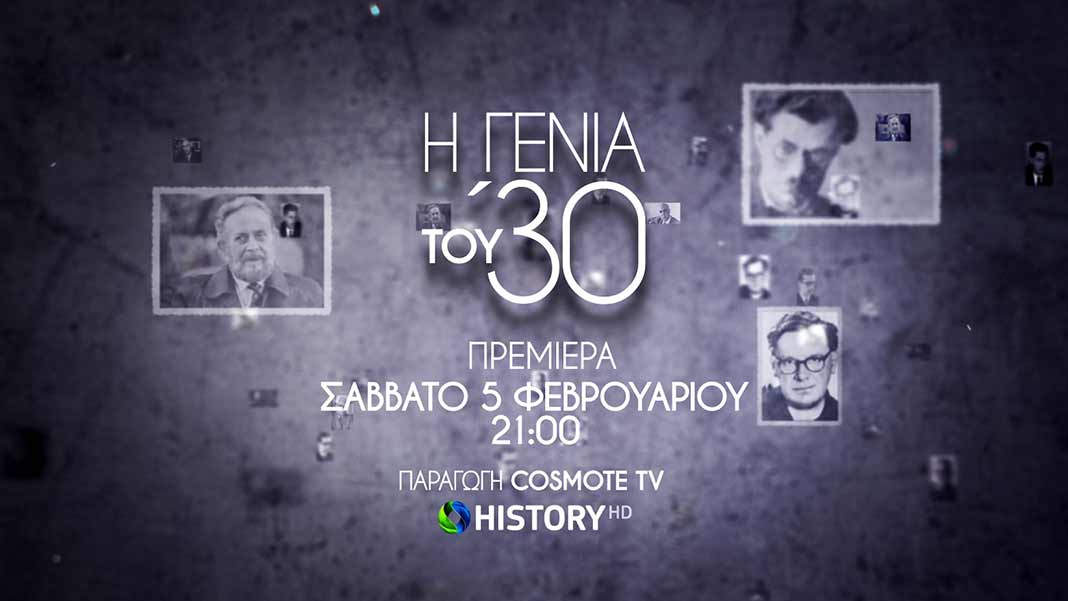 Η ζωή και το έργο κορυφαίων Ελλήνων λογοτεχνών, που διαμόρφωσαν και σημάδεψαν την πορεία της νεοελληνικής λογοτεχνίας, «ζωντανεύουν» στη νέα δραματοποιημένη σειρά ντοκιμαντέρ της COSMOTE TV, με τίτλο «Η Γενιά του ‘30». Το νέο docuseries κάνει πρεμιέρα το Σάββατο 5/2 στις 21.00, στο COSMOTE HISTORY HD, με το πρώτο επεισόδιο να μεταδίδεται ταυτόχρονα, ελεύθερα για το κοινό, από το επίσημο YouTube κανάλι της COSMOTE TV.