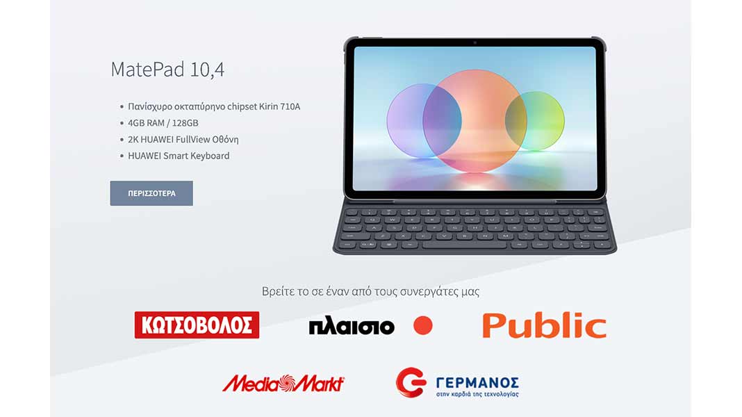 Τα καινοτόμα και εύχρηστα μοντέλα των MateBooks και MatePads της Huawei, αποτελούν ιδανική επιλογή και για εκπαιδευτικούς, μαθητές και φοιτητές, αφού με την προηγμένη τεχνολογία τους, την κορυφαία απόδοση και ταχύτητα, τις άπειρες δυνατότητες πολυμέσων, εφαρμογών και μεταφοράς αρχείων καθώς και την απεριόριστη χωρητικότητα τους, συνδυασμένα με υψηλή κομψότητα και design, καλύπτουν πλήρως, όλες τις ιδιαίτερες απαιτήσεις της εκπαιδευτικής διαδικασίας και όχι μόνο. Για περισσότερες πληροφορίες σχετικά με το πρόγραμμα επισκεφτείτε τη σελίδα: https://merimnabyhuawei.gr/, ενώ για τα προϊόντα μπορείτε να επισκεφθείτε την ιστοσελίδα της Huawei
