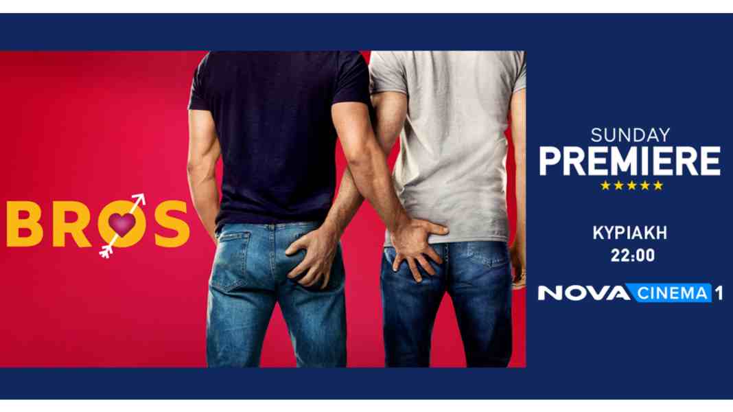 Η ζώνη Sunday Premiere αυτή την Κυριακή φέρνει στις οθόνες των συνδρομητών της Nova το «Bros! Οι σινεφίλ θα έχουν την ευκαιρία να παρακολουθήσουν σε Α’ τηλεοπτική προβολή την Κυριακή 30 Ιουλίου (22:00) στο Novacinema1, τον απόλυτο κινηματογραφικό προορισμό, την κωμωδία «Bros» (2022, διάρκεια 111’) με τους Billy Eichner, Luke Macfarlane, Debra Messing  σε σκηνοθεσία του Nicholas Stoller.