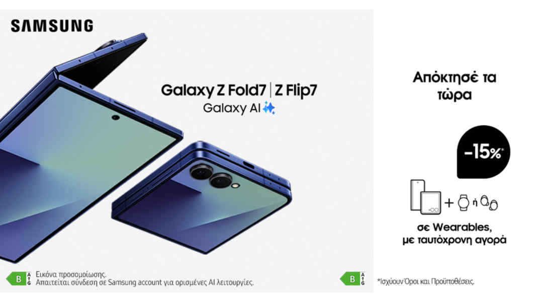Τα πολυαναμενόμενα smartphones Samsung Galaxy Z Fold7 | Galaxy Z Flip7 | Galaxy Z Flip7 FE έφτασαν στη Nova και οι καταναλωτές μπορούν πλέον να τα προμηθευτούν με όφελος 15% σε Galaxy wearables, με ταυτόχρονη αγορά. Η νέα γενιά Samsung Galaxy Z αποτελεί την ιδανική πρόταση για όσους αγαπούν τα social media, τη φωτογραφία και την υψηλής ποιότητας ψυχαγωγία, προσφέροντας κορυφαίες επιδόσεις, premium κατασκευή και μοναδικές δυνατότητες AI.
