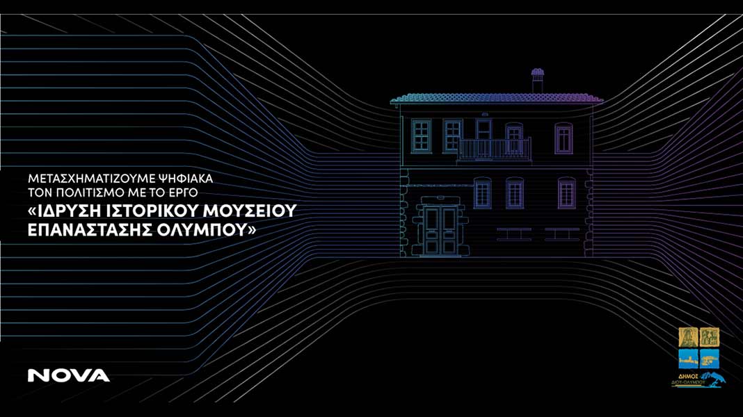 Η Nova, μέλος της United Group, του κορυφαίου παρόχου τηλεπικοινωνιών και media στην Νοτιοανατολική Ευρώπη, στο πλαίσιο της Ίδρυσης του Ιστορικού Μουσείου Επανάστασης Ολύμπου, συμβάλει ενεργά, ως ανάδοχος, στη δημιουργία της σύγχρονης διαδραστικής ψηφιακής έκθεσης του μουσείου. Η Nova, μέσα από την χρήση σύγχρονων ψηφιακών οπτικοακουστικών τεχνολογιών εικονικής πραγματικότητας (VR) και 3D animation συμβάλλει στη δημιουργία του Ιστορικού Μουσείου Επανάστασης Ολύμπου. Με στόχο την ανάδειξη της ιστορίας του Δήμου Δίου Ολύμπου μετασχηματίζει το πολιτιστικό τοπίο της περιοχής δίνοντας στο κοινό την ευκαιρία να γνωρίσει με εύληπτο και βιωματικό τρόπο την πολιτιστική κληρονομιά του τόπου αυτού.