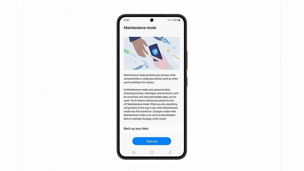Η Samsung Electronics Co., Ltd. ανακοίνωσε την παγκόσμια ανάπτυξη[1] της λειτουργίας συντήρησης (Maintenance Mode), μιας νέας λειτουργίας προστασίας προσωπικών δεδομένων που έρχεται σε επιλεγμένες συσκευές Samsung Galaxy. Η Λειτουργία Συντήρησης επιτρέπει στους χρήστες να αποκλείσουν την πρόσβαση στις προσωπικές τους πληροφορίες, όπως οι φωτογραφίες, τα μηνύματα ή οι επαφές τους όταν τη δίνουν για επισκευή.