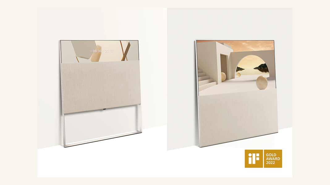 Η συλλογή LG OLED Objet, που ανήκει στη σειρά Lifestyle τηλεοράσεων, εξασφάλισε το υψηλότερο iF Gold Award για τον εξαιρετικό σχεδιασμό που μοιάζει με καβαλέτο, ενώ συνδυάζεται άψογα σε κάθε δωμάτιο, χάρη στο μινιμαλιστικό στυλ και τη διακριτική χρήση ουδέτερων χρωμάτων, φέρνοντας άμεσα εκλεπτυσμένη αισθητική και οπτική αρμονία σε κάθε εσωτερικό χώρο. Οι χρήστες μπορούν να χαμηλώσουν το κάλυμμα ώστε να αποκαλύψουν την πλήρη έκταση της οθόνης για μέγιστη εμπειρία θέασης ή να καλύψουν εν μέρει την οθόνη για συγκεκριμένες, πιο lifestyle χρήσεις.