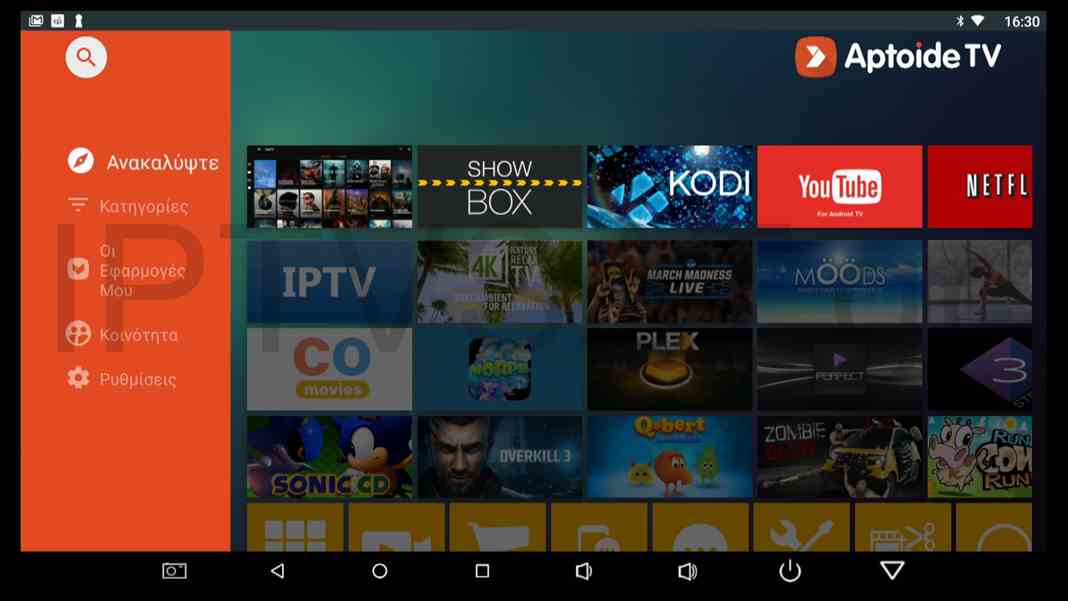 Στην κάτω μπάρα, μπορούμε να τοποθετήσουμε όποιες εφαρμογές χρησιμοποιούμε πιο συχνά, για άμεση πρόσβαση. Εκτός από το Google Play, μίας πολύ καλή πρόταση για εγκατάσταση και αναβάθμιση εφαρμογών, είναι το Aptoide TV.