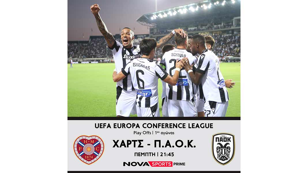 O δρόμος του ΠΑΟΚ για τους ομίλους UEFA Europa Conference League περνάει αποκλειστικά από το Novasports! Οι φίλοι του ποδοσφαίρου την Πέμπτη 24 Αυγούστου στις 21:45 θα έχουν την ευκαιρία να δουν ζωντανά και αποκλειστικά στο Novasports Prime τον 1ο αγώνα Χαρτς – ΠΑΟΚ που θα διεξαχθεί στην Σκωτία για τα Playoffs της διοργάνωσης.