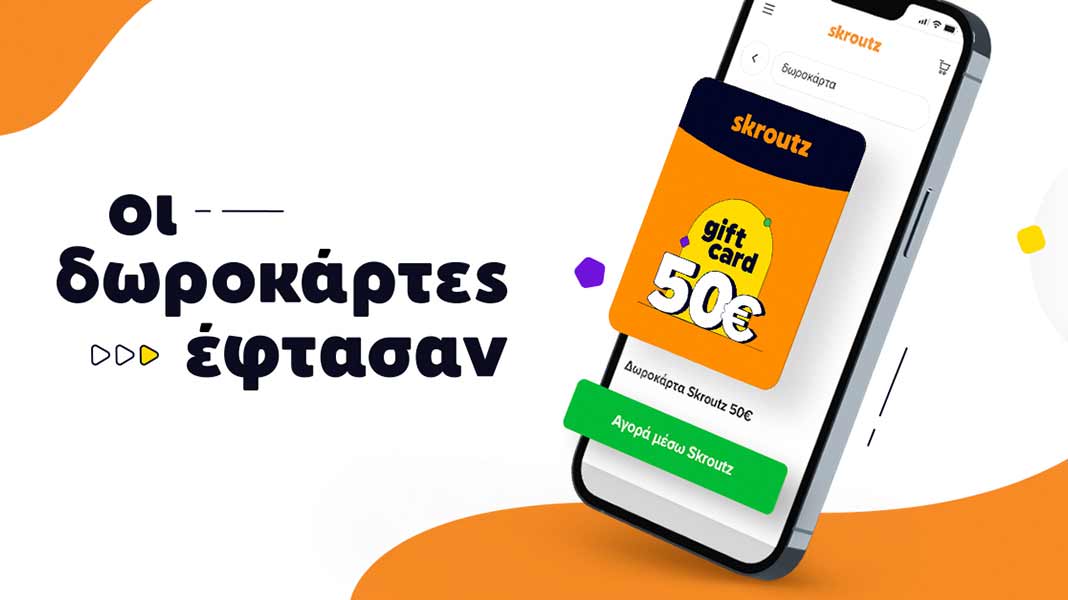 Το Skroutz, το #1 marketplace στην Ελλάδα, πιστό στο όραμα του να προσφέρει εκείνες τις λύσεις που κάνουν την online αγοραστική εμπειρία ευχάριστη, γρήγορη και ασφαλή, συστήνει στους καταναλωτές τις ηλεκτρονικές δωροκάρτες Skroutz. Πλέον, ο καταναλωτής μπορεί να επιλέξει τις δωροκάρτες για αγορά μέσω Skroutz και να τις στείλει στο αγαπημένο του πρόσωπο ώστε να μπορέσει ο ίδιος να επιλέξει πως θα τις ξοδέψει μέσα από τα περισσότερα από 7 εκατομμύρια προϊόντα που έχει στην επιλογή του.