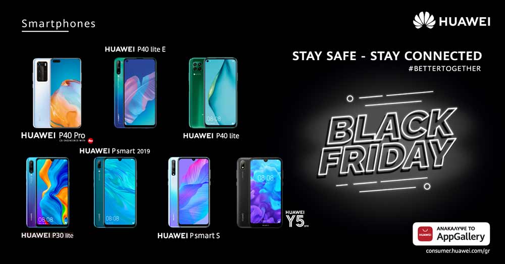 Πλησιάζουμε στο τέλος μιας αναπάντεχα ανατρεπτικής και ιδιαίτερα απαιτητικής χρονιάς και αν μπορούμε με βεβαιότητα να πούμε κάτι είναι ότι η τεχνολογία δεν είναι πλέον μία πολυτέλεια, αλλά μια απαραίτητη προϋπόθεση: για συχνή επικοινωνία, αποδοτική εργασία, απολαυστική ψυχαγωγία, αποτελεσματική φυσική άσκηση και παρακολούθηση της υγείας και γενικά για μία πιο εύκολη καθημερινότητα. Το φετινό λοιπόν πακέτο προσφορών  Huawei συσκευών, σε όλο το επίσημο δίκτυο συνεργατών, στο πλαίσιο της Black Friday που ξεκινά από σήμερα Παρασκευή 20 Νοεμβρίου και θα κορυφωθεί, την Παρασκευή 27  Νοεμβρίου– αποσκοπεί σε αυτό ακριβώς: να δώσει σε όλους  την ευκαιρία να αποκτήσουν ή να αναβαθμίσουν όχι μόνο τα smartphones τους, αλλά και όλες τις συσκευές ή τα gadgets τους  σε εξαιρετικές τιμές!. Αν λοιπόν είστε από εκείνους που περιμένουν με αγωνία το φετινό Black Friday για να αναβαθμιστείτε τεχνολογικά, μην χάσετε τις προσφορές  Huawei συσκευών! Αποκτήστε ένα βραβευμένο smartphone ένα high-tech smartwatch για να παρακολουθείτε την υγεία σας 24 ώρες το 24ωρο, ένα υβριδικό tablet πολυεργαλείο, ένα πανίσχυρο laptop ή τα πολυσυζητημένα ασύρματα ακουστικά με noise cancelling που είχατε βάλει καιρό στο μάτι!