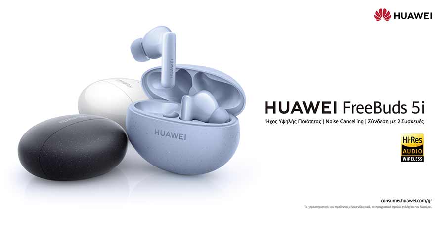 Σήμερα κυκλοφορούν στην Ελληνική αγορά τα HUAWEI FreeBuds 5i, τα νέα True Wireless Stereo (TWS) ακουστικά της Huawei που παρέχουν εξαιρετική ποιότητα ήχου, ακύρωση θορύβου και ευελιξία εφόσον συνδέονται με 2 συσκευές ταυτόχρονα, ανατρέποντας τους κανόνες στην κατηγορία των ακουστικών με τιμή κάτω των 100 ευρώ.