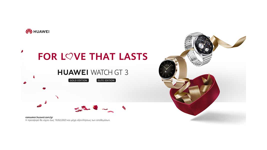 Γιατί να μην γιορτάσετε την Ημέρα του Αγίου Βαλεντίνου, με ένα δώρο που διαρκεί; Η HUAWEI ετοίμασε για εσάς μια ξεχωριστή προσφορά!: Τα εντυπωσιακά κομψά και ανθεκτικά smartwatches ΗUAWEI GT3, σε δύο εξαιρετικές εκδόσεις -Gold και Elite- και σε τιμές που θα… ερωτευτείτε!