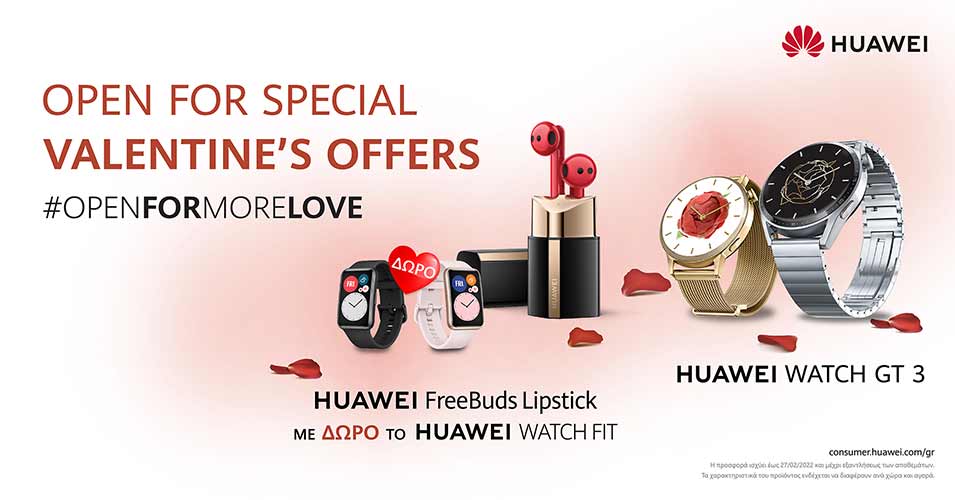 Η ημέρα του Αγίου Βαλεντίνου πλησιάζει και ένας από τους καλύτερους τρόπους για να φροντίσετε εσάς και τους αγαπημένους σας είναι να κάνετε άνετη την καθημερινότητα όλων. Τα πιο σύγχρονα gadget, που προσφέρουν άνεση και τεχνολογική υπεροχή, τα βρίσκετε στη HUAWEI! Γι’ αυτό τον λόγο, η εταιρεία έχει δημιουργήσει τις καλύτερες προσφορές για όσους επιθυμούν να συνδυάσουν την ημέρα του έρωτα με ένα δώρο τεχνολογίας.