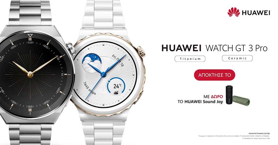 Η προσφορά ισχύει για όλες τις εντυπωσιακές και μοναδικές εκδόσεις του Ηuawei GT3 Pro: Black, Leather, Grey Leather και φυσικά οι εκδόσεις Titanium, με το premium design και τις μοντέρνες πινελιές καθώς και το εμπνευσμένο από τη «Γέννηση της Αφροδίτης» του Μποτιτσέλι, Ceramic Edition, όπου η απλότητα του κεραμικού συμπληρώνει τη γοητεία του μετάλλου.