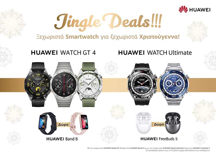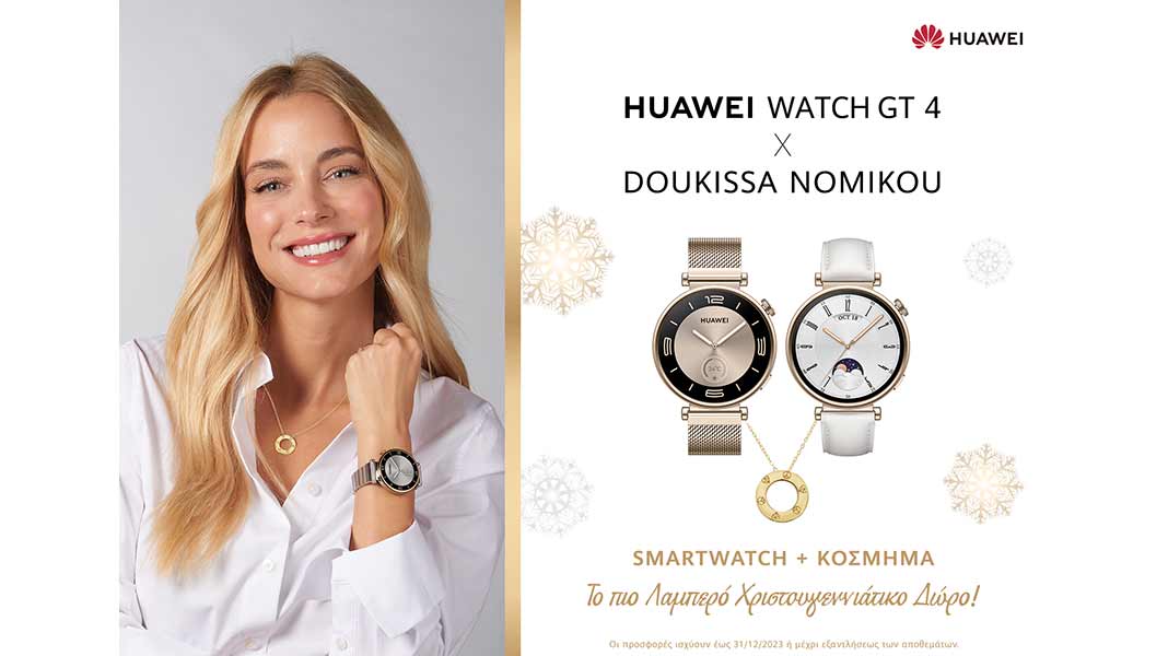 HUAWEI WATCH GT4 μαζί με κόσμημα “Doukissa Nomikou Collection” και πολλές ακόμα Χριστουγεννιάτικες Προσφορές από την Huawei!