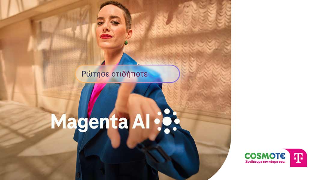 Τη δύναμη της Τεχνητής Νοημοσύνης φέρνει σε όλους η COSMOTE TELEKOM, με το Magenta AI, την πλατφόρμα μέσα από την οποία δίνει για πρώτη φορά εύκολη, ασφαλή και δωρεάν πρόσβαση σε ένα σύνολο εργαλείων ΑΙ. Διαθέσιμοσταapp COSMOTE TELEKOM και WHAT’S UP, αλλά και στις ΑI συσκευές T Phone και T Tablet, το Magenta AI κάνει την Τεχνητή Νοημοσύνη προσιτή σε όλους και τη ζωή μας πιο απλή, πιο αποδοτική, αλλά και πιο συναρπαστική.
