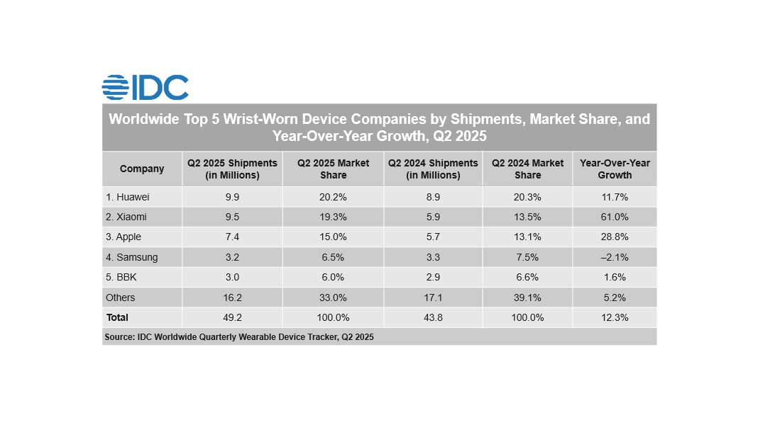 Την κορυφή στην παγκόσμια αγορά των wearables κατέκτησε η Huawei και στο δεύτερο τρίμηνο του 2025, με μερίδιο 20.2%, σύμφωνα με το IDC.