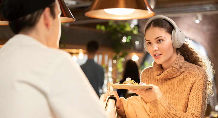 Μία νέα δυνατότητα των ακουστικών WH-1000XM4 είναι το “Speak-to-Chat”, μια καινοτόμος τεχνολογία που σας επιτρέπει να κάνετε σύντομες συνομιλίες χωρίς να αφαιρέσετε τα ακουστικά σας, πχ κάνοντας την παραγγελία καφέ ενώ ακούτε μουσική ακόμα πιο εύκολη. Απλώς πείτε κάτι και τα ακουστικά θα αναγνωρίσουν τη φωνή σας, θα σταματήσουν αυτόματα τη μουσική σας και θα σας επιτρέψουν να ακούσετε τον ήχο του περιβάλλοντος, ώστε να μπορείτε να πραγματοποιήσετε μια συνομιλία χωρίς να αφαιρέσετε τα ακουστικά σας. Η μουσική ξεκινά αυτόματα να παίζει ξανά 30 δευτερόλεπτα [5] μετά την τελευταία σας ομιλία. Η λειτουργία «Γρήγορη προσοχή (Quick Attention)» είναι διαθέσιμη στα WH-1000XM4, οπότε εάν θέλετε να ακούσετε μια ανακοίνωση ή να πείτε κάτι για λίγο, απλά τοποθετήστε το δεξί σας χέρι πάνω από το ακουστικό για να μειώσετε την ένταση αμέσως και να ακούσετε απρόσκοπτα τον ήχο του περιβάλλοντος.