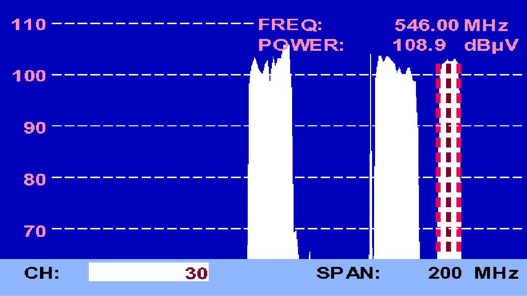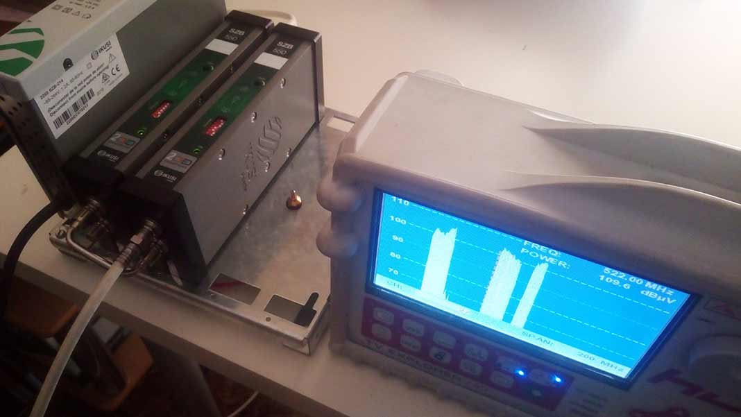 Με έκπληξη διαπιστώσαμε ότι η στάθμη εξόδου δεν έπεσε από τα 121 dbμV, ακόμα και όταν κατεβάσαμε την είσοδο κάτω από τα 30 dbμV – δηλαδή η νέα μονάδα SZB+550 της IKUSI, έχει μέγιστη ενίσχυση μεγαλύτερη από 90 dB !!!