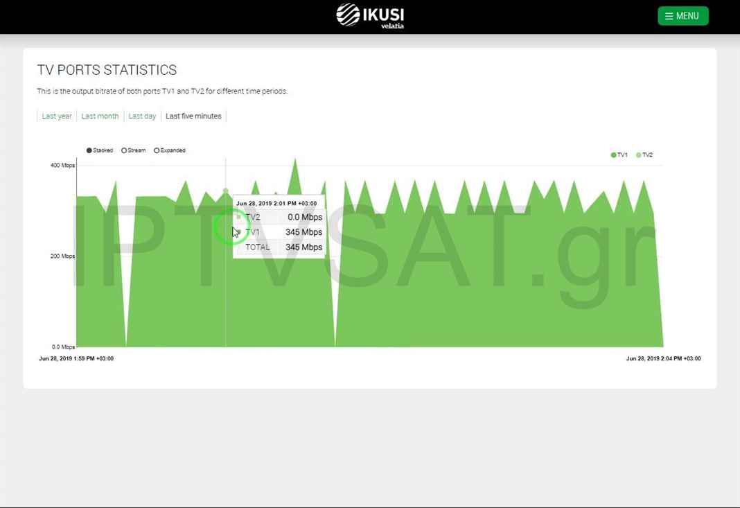 Στην επόμενη επιλογή Statistics by TV port, έχουμε πληροφόρηση για τα TV ports, δηλαδή τις 2 Gigabit εξόδους, με γραφική αναπαράσταση. Στις συνήθεις περιπτώσεις, επειδή δεν ξεπερνάμε το 1 Gbps, χρησιμοποιούμε μόνο την μία TV port από τις δύο που έχουμε διαθέσιμες.