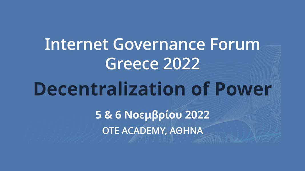 Για δύο nμέρεs, στιs 5 και 6 Νοεμβρίου 2022, το OTEAcademy θα γεμίσει με μία σειρά από καινοτόμεs ομιλίεs, ερευνnτικά σχέδια, συζnτnσειs και προτάσειs, προτείνονταs λύσειs και πολιτικέs για μερικέs από τιs πιο απαιτnτικέs προκλnσειs τns εποχns μαs. Το IGF Greece 2022 θα συγκεντρώσει αναγνωρισμένουs εκπροσώπουs του δημόσιου και ιδιωτικού τομέα, τηs ακαδημαϊκήs και τεχνικήs κοινότηταs και τηs Κοινωνίαs των Πολιτών και θα αναλύσει τιs πολλαπλέs πτυχέs του «Decentralization of Power» (Αποκεντροποίnσn τns Δύναμns), εστιάζονταs στουs τρόπουs με τουs οποίουs οι νέεs τεχνολογίεs και το διαδίκτυο αναδιαμορφώνουν πτυχέs τns πολιτικns, τns οικονομίαs και τns ζωns των πολιτών στο πλαίσιο αποκεντροποίnσns υπαρχουσών δομών διακυβέρνnσns.
