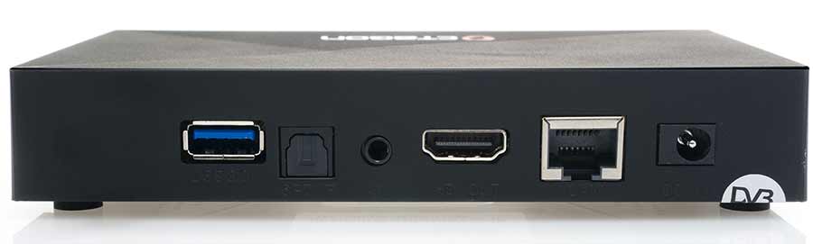 Στον OCTAGON SX888 4K UHD IP υπάρχουν δύο θύρες USB, μία θύρα USB 2.0 στο πλάι και μία θύρα USB 3.0 πίσω. Στη πίσω όψη θα βρείτε επίσης μια σύνδεση HDMI 2.0a, μια διασύνδεση S/PDIF, έξοδο AV (mini jack) και σύνδεση Ethernet LAN 100 Mbps, ενώ στα αριστερά διατίθεται – μαζί με την θύρα USB 2.0 – και μία υποδοχή για τον παρεχόμενο εξωτερικό αισθητήρα υπέρυθρων .