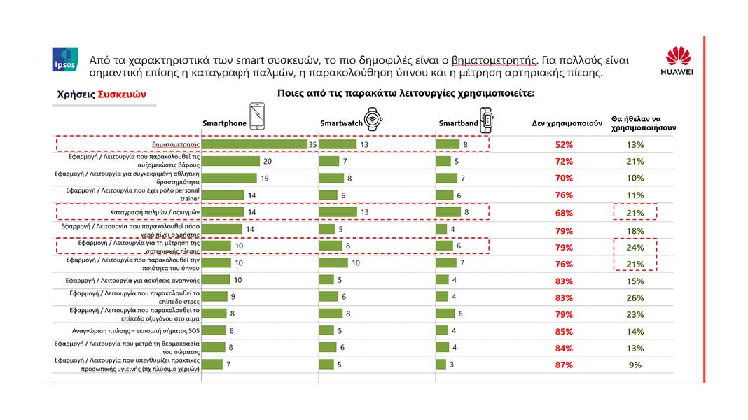 Βάσει των ευρημάτων της έρευνας, οι πολίτες αναγνωρίζουν τις επιπτώσεις που είχαν οι μήνες του lockdown στα σώματα και την ψυχολογία τους και βρίσκονται πλέον στο στάδιο να θέλουν να κάνουν κάτι για αυτό, από το να καταπιαστούν με μια νέα αθλητική δραστηριότητα ή να ξεκινήσουν ασκήσεις αναπνοής και διαλογισμού, μέχρι το να ταξιδέψουν εντός και εκτός Ελλάδας ή να κάνουν δίαιτα και να κλείσουν άμεσα ραντεβού για πλήρες ιατρικό check-up. Τι μπορεί να τους δώσει κίνητρο και την έξτρα ώθηση που χρειάζονται για να πάρουν τη ζωή στα χέρια τους; Οι έξυπνες συσκευές, όπως smartwatches και smartbands, οι οποίες διαθέτουν προηγμένη τεχνολογία και λειτουργίες ακριβείας για τη συνεχή παρακολούθηση της υγείας και της φυσικής κατάστασης των χρηστών.