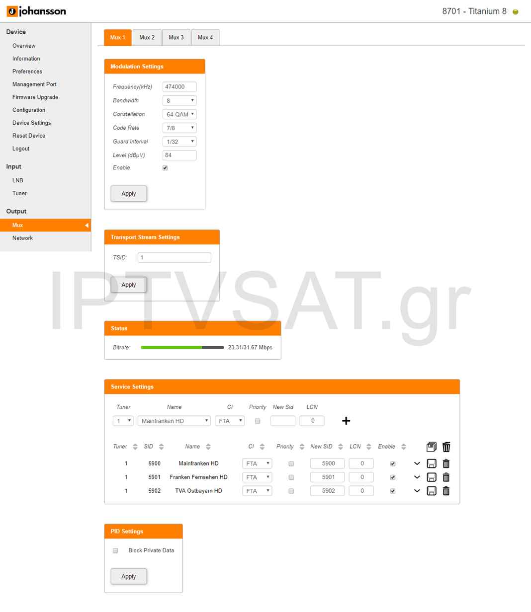 Να αναφέρουμε ότι το μέγιστο όριο για το κάθε mux, επιτυγχάνεται με τις default ρυθμίσεις συντονισμού για τα mux, δηλαδή 64 QAM κτλ.