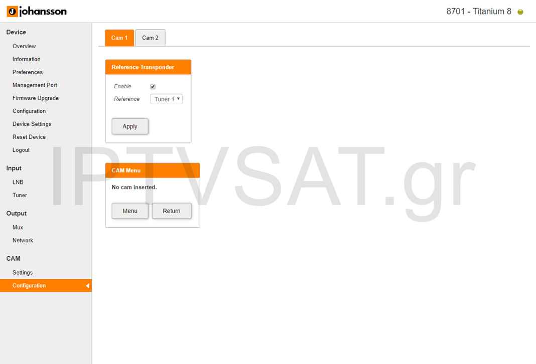 Reference Transponder: Θα πρέπει να ενεργοποιήσουμε και να επιλέξουμε ένα tuner-αναμεταδότη αναφοράς για κάθε CAM ξεχωριστά, προκειμένου τα CAM να παίρνουν τις πληροφορίες εξουσιοδότησης. Με Apply επιβεβαιώνουμε τις επιλογές μας.