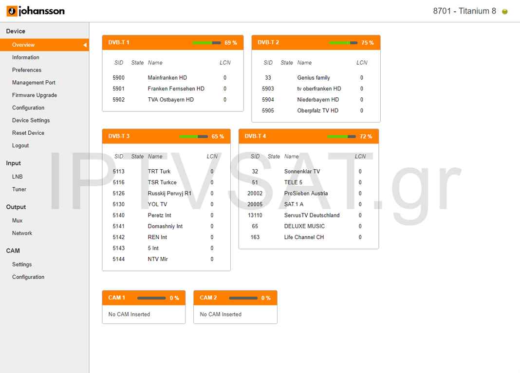 Overview: Μία πλήρη εικόνα με τα 4 multiplex, τα κανάλια τους, αλλά και το ποσοστό πλήρωσης, καθώς και το ποσοστό αποκωδικοποιήσεων ανά CAM, εάν βέβαια χρησιμοποιείται κάποιο CAM.