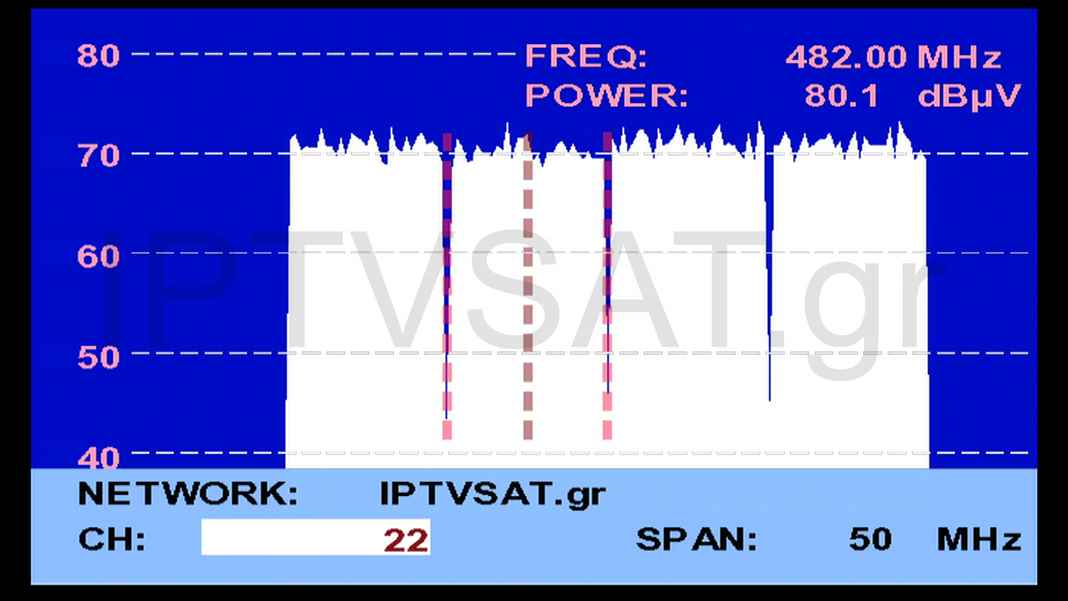 Να αναφέρουμε ότι η στάθμη εξόδου που επιτυγχάνεται με το 8701 είναι ρυθμιζόμενη μεταξύ 69 – 84 dBμV, ενώ το MER ξεπερνάει τα 43 dB.