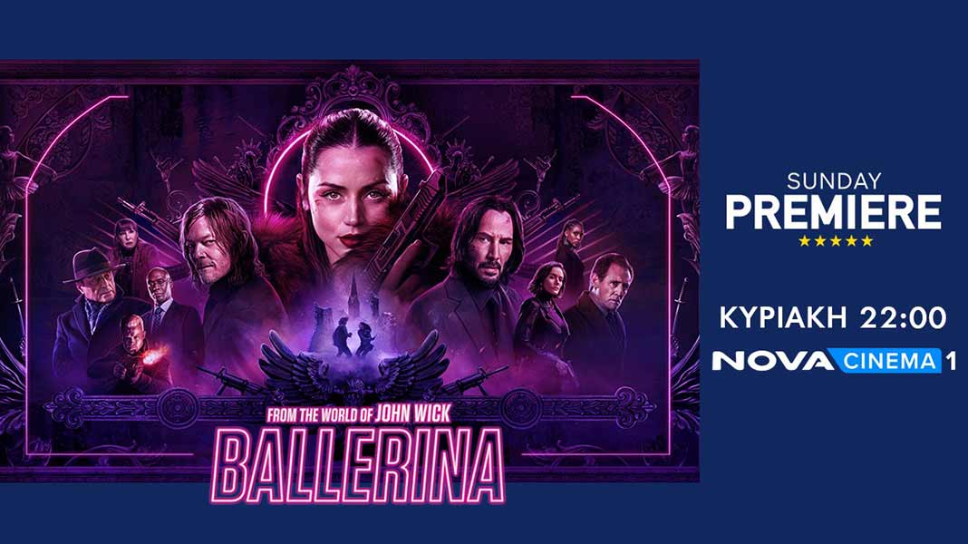 Την ταινία δράσης «Ballerina» (2025, διάρκειας 109’) με τους Keanu Reeves, Ana de Armas, Anjelica Huston, Gabriel Byrne και σκηνοθεσία του Len Wiseman θα απολαύσουν οι σινεφίλ την Κυριακή 11 Ιανουαρίου (22:00) στη ζώνη Sunday Premiere στο Novacinema1.