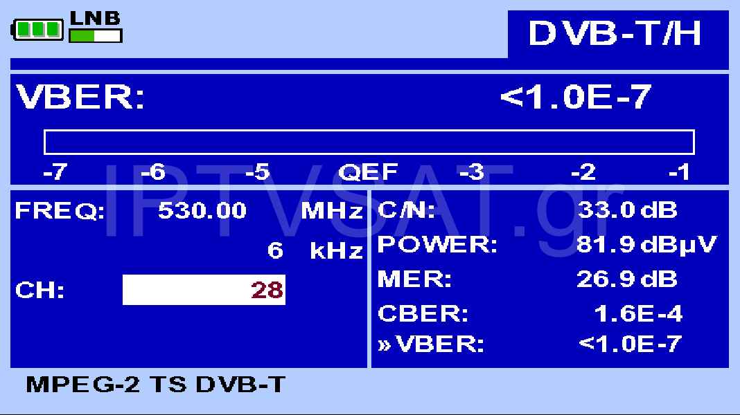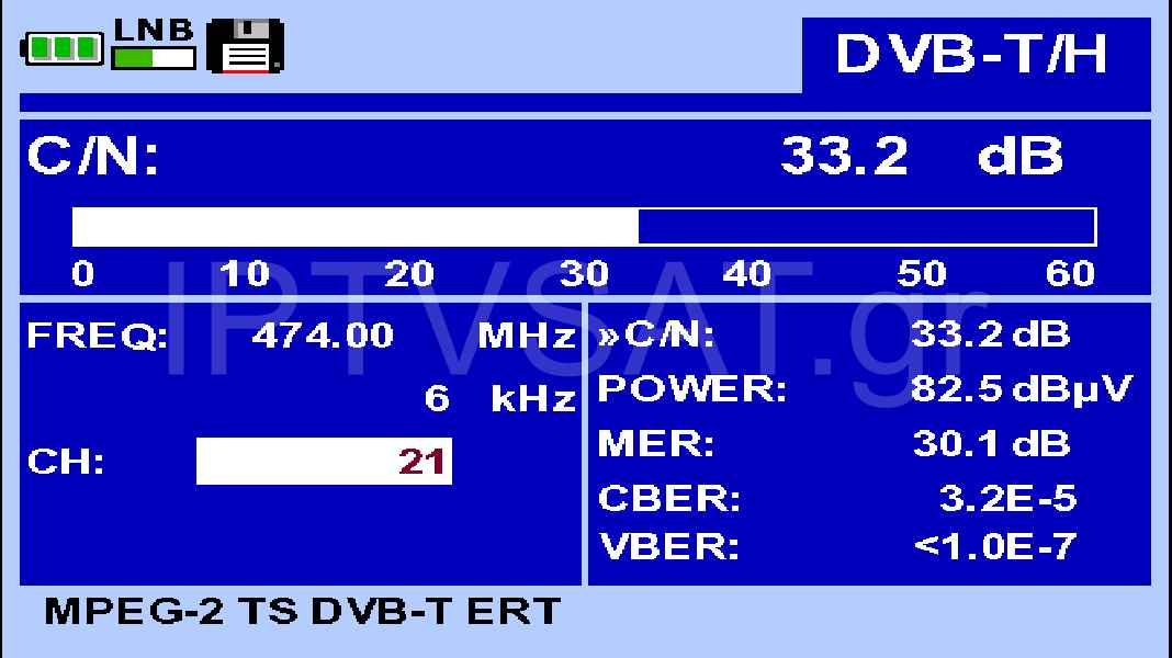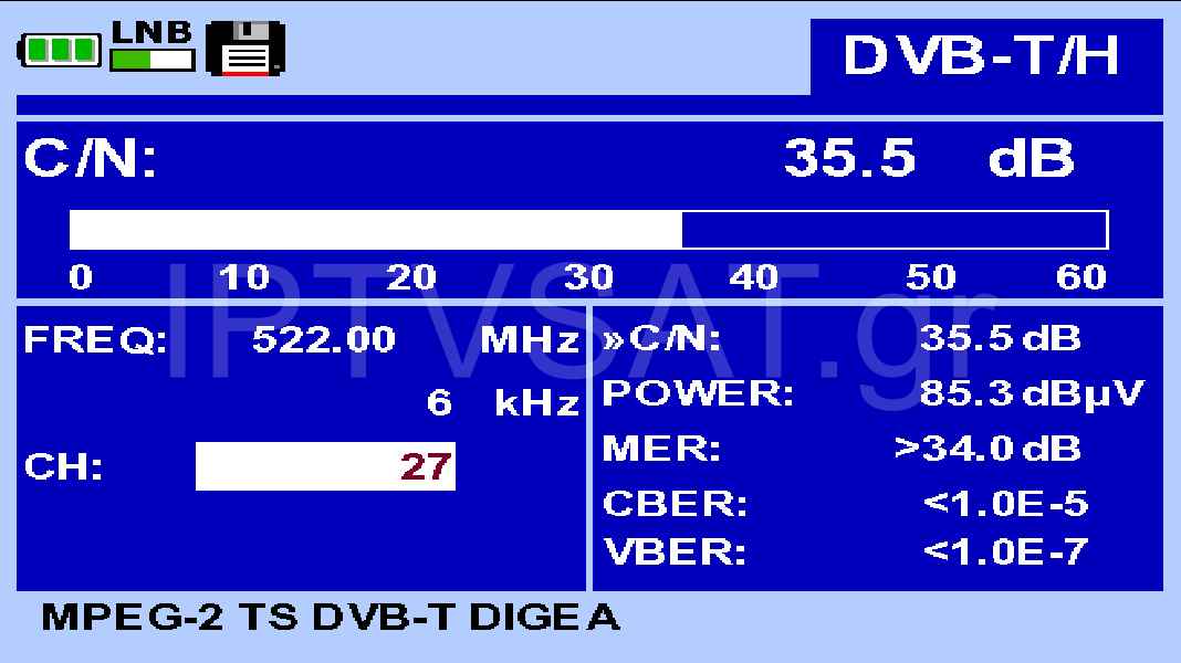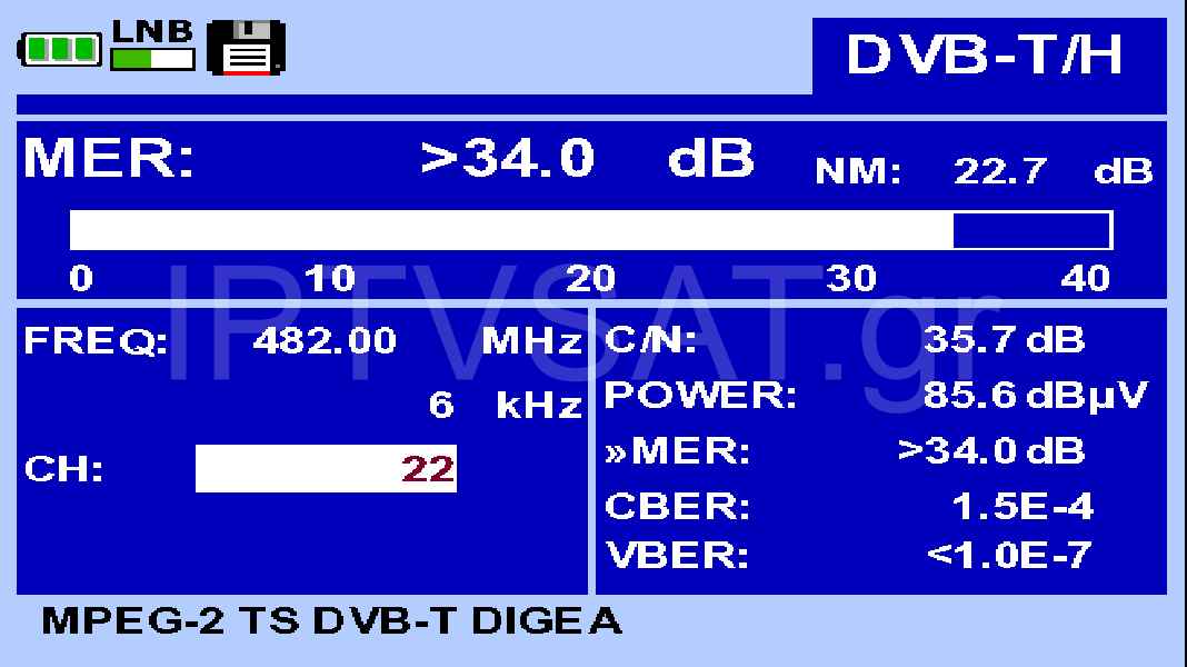 Εγκαταστήσαμε τη κεραία σε οριζόντια θέση σε ιστό ταράτσας, με την επιφάνειά της κάθετη στην ευθεία προς το κέντρο εκπομπής. Πραγματοποιήσαμε μετρήσεις σε όλα τα διαθέσιμα κανάλια στη περιοχή μας και διαπιστώσαμε ότι η κεραία σε πολλές περιπτώσεις παρουσίασε ισχυρή απόδοση με MER που ξεπερνούσε τα 34 dB που μπορούσε να δείξει το όργανο, ενώ το χαμηλότερο MER παρουσιάστηκε στον αδύναμο δίαυλο 28 με τα ξένα κανάλια για τον οποίο είχαμε στάθμη 82 dBμV και MER 27 dB. Στην ΕΡΤ στο κανάλι 21 επιτύχαμε μέγιστο MER στα 30 dB με στάθμη 82,5 dBμV. Σε όλα τα υπόλοιπα κανάλια, είχαμε υψηλές στάθμες άνω των 80 dBμV και MER άνω των 34 dB που μπορούσε να δείξει το όργανο.