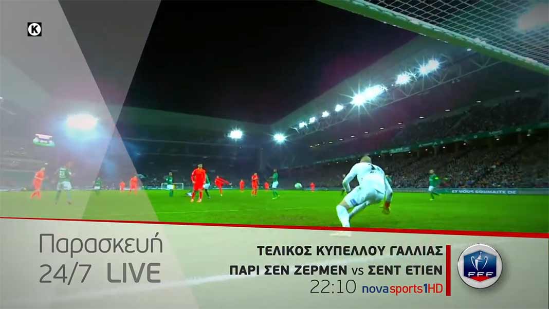 - 22:10 Παρί Σεν Ζερμέν-Σεντ Ετιέν, Novasports1HD σε περιγραφή του Ισίδωρου Πρίντεζη