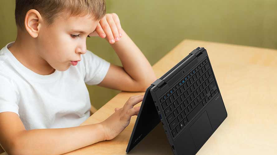 Επιπλέον, ο φορητός υπολογιστής έχει εξοπλιστεί με μια σειρά από λειτουργίες συνδεσιμότητας, προκειμένου να ελαχιστοποιηθεί η ταλαιπωρία που σχετίζεται με την διαδικτυακή μάθηση. Το Intel Wi-Fi 6 παρέχει γρήγορη ασύρματη σύνδεση, ενώ μια στρατηγικά τοποθετημένη ασύρματη κεραία και το 2×2 MU-MIMO βοηθούν στη σύνδεση σε περιβάλλοντα πολλαπλών χρηστών. Η προαιρετική συνδεσιμότητα 4G LTE παρέχει στους μαθητές επιπλέον προσωπικό bandwidth, έτσι ώστε να μπορούν να παραμένουν συνδεδεμένοι και να αποκτούν πρόσβαση σε σχολικές εργασίες και εφαρμογές στο cloud, ακόμα και όταν βρίσκονται εκτός εμβέλειας Wi-Fi.