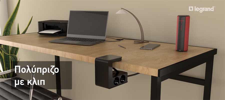 Πολύμπριζο με κλιπ: Έξυπνος σχεδιασμός για εύκολη προσαρμογή σε κάθε επιφάνεια εργασίας