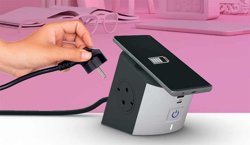 Πολύμπριζο / Σταθμός Φόρτισης: Μικρό και εργονομικό πολύπριζο με ασύρματη φόρτιση