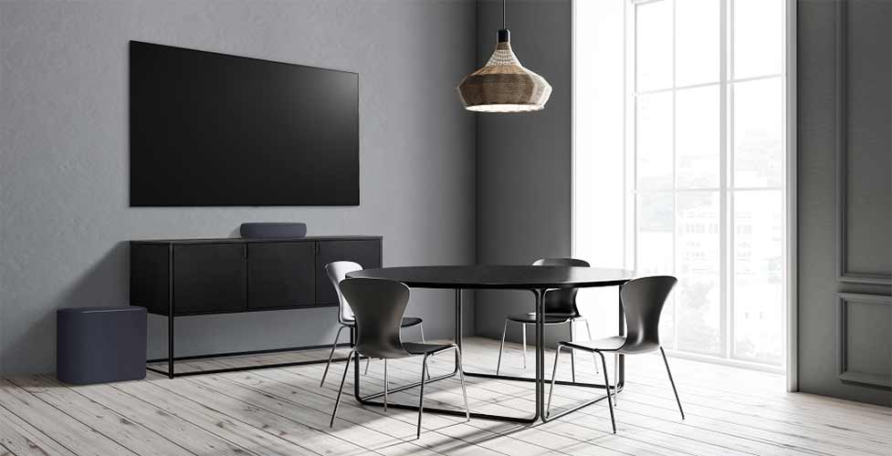 Το προηγμένο σύστημα 3.1.2 καναλιών του LG Eclair με ασύρματο subwoofer αξιοποιεί την τεχνολογία της Meridian Audio για εξαιρετική λεπτομέρεια και κορυφαίο ήχο. Η τεχνολογία Meridian Horizon συνδυάζει περιεχόμενο δύο καναλιών σε καθηλωτικό ήχο για να προσφέρει μια πραγματικά συναρπαστική εμπειρία ακρόασης με τονική ισορροπία που παραμένει αυθεντική στην αρχική ηχογράφηση.